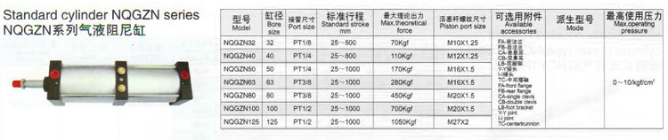 NQGZN32,NQGZN40,NQGZN50,NQGZN63,NQGZN80,NQGZN100,NQGZN125,氣液阻尼缸