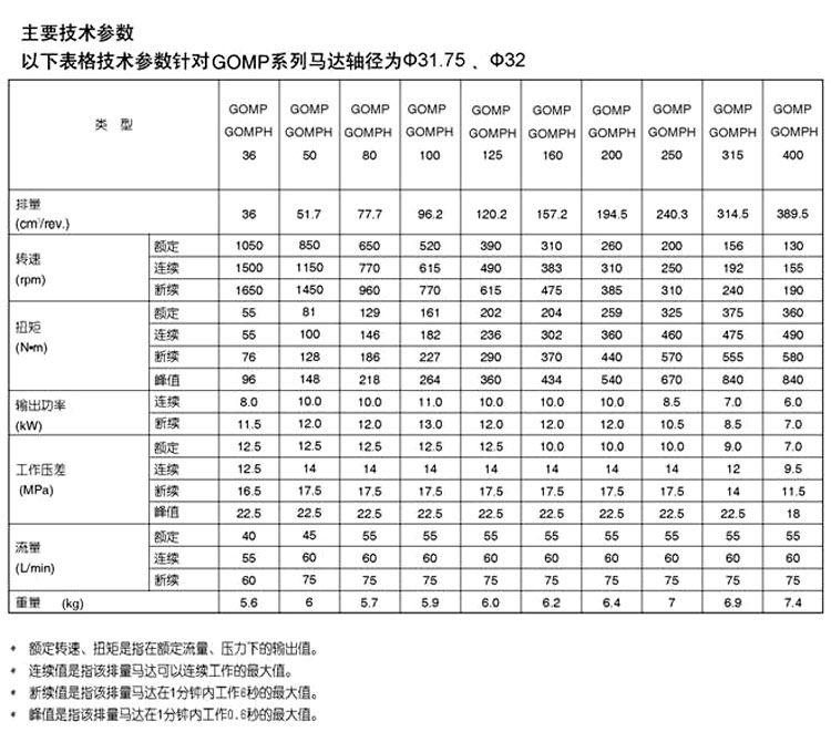GOMP-36,GOMP-50,GOMP-80,GOMP-100,GOMP-125,GOMP-160,GOMP-200,GOMP-250,GOMP-315,GOMP-400,擺線液壓馬達(dá) |