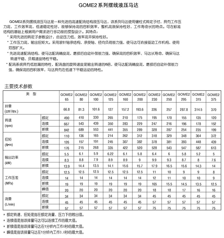 GOME2-65,GOME2-80,GOME2-100,GOME2-125,GOME2-160,GOME2-200,GOME2-315,GOME2-375,擺線液壓馬達(dá)