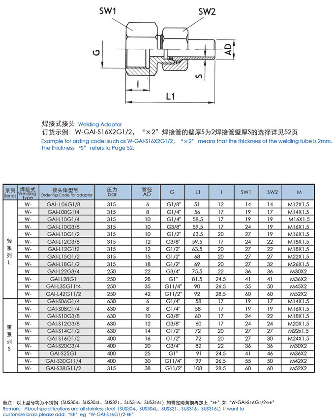W-GAI-L06G1/8,W-GAI-L10G1/4,W-GAI-L35G11/4,W-GAI-S20G3/4,W-GAI-S30G11/4,直通壓力表焊接式接頭 |
