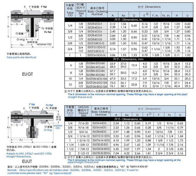 EUGT4,EUGT6,EUGT8,EUGT10,EUGT12,EUUT4,EUUT6,EUUT8,EUUT12,EUUT24,三通可調(diào)向卡套接頭 |