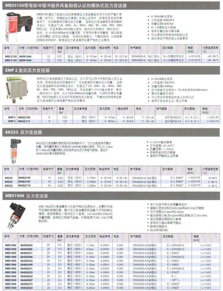 MBS33,MBS3000,MBS3050,MBS4010,MBS5150,EMP2,AKS33,MBS1900,壓力變送器