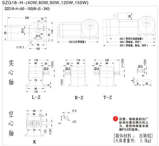 SZG18-H-40W,SZG18-H-60W,SZG18-H-90W,SZG18-H-120W,SZG18-H-150W,雙曲面齒輪減速機