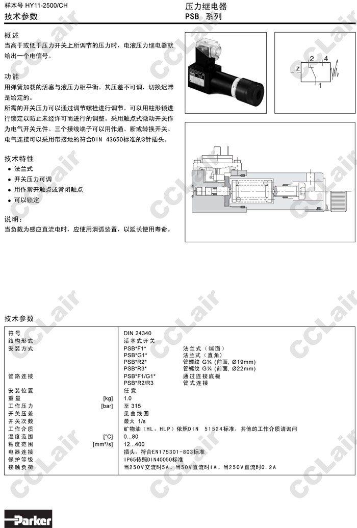 PSB040,PSB100,PSB160,PSB250,PSB040AF1A4,PSB100AF1A4,PSB160AF1A4,PSB250AF1A4,Parker壓力繼電器