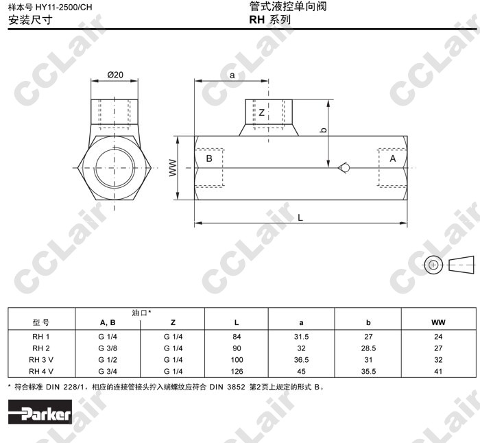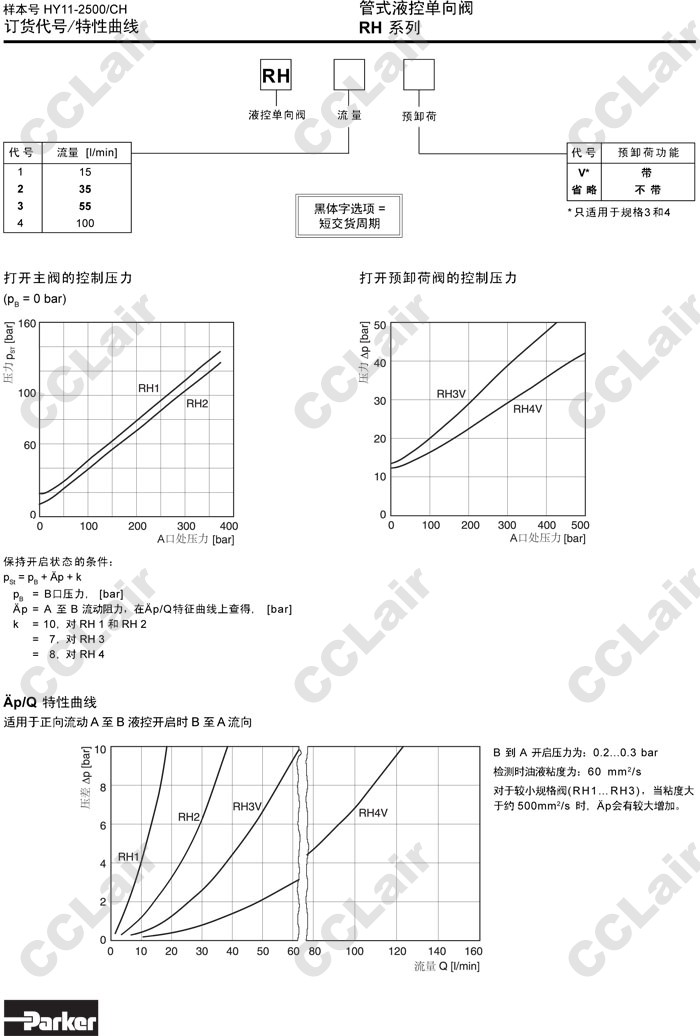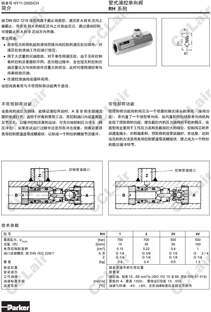 RH1,RH2,RH3,RH4,RH3V,RH4V,Parker管式液控單向閥