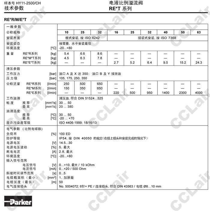RE16E,RE25E,RE32E,RE40E,RE50E,RE63E,RE16E07L1SN1F0,RE25E07L1SN1F0,Parker電液比例溢流閥