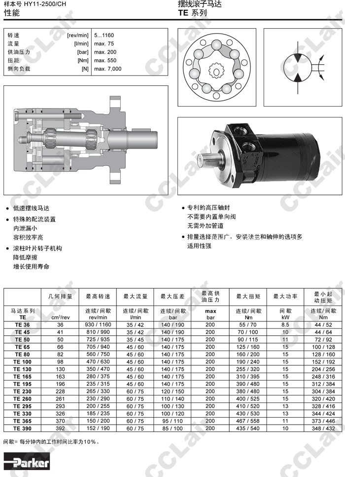 TE0036,TE0045,TE0050,TE0065,TE0080,TE0100,TE0130,Parker擺線滾子馬達(dá)