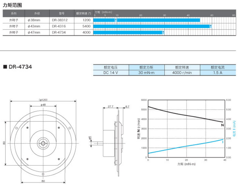 DR-38312,DR-4316,DR-4734,外轉(zhuǎn)子直流無(wú)刷馬達(dá)