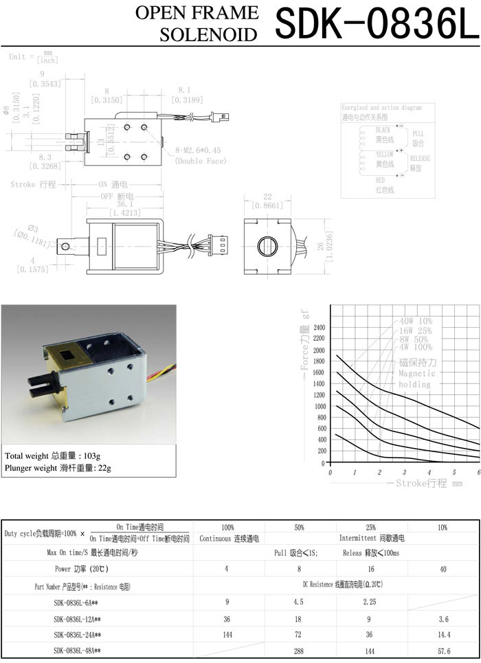 SDK-0836L-6A,SDK-0836L-12A,SDK-0836L-24A,SDK-0836L-48A,直動電磁鐵 |