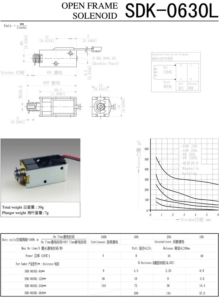 SDK-0630L-6A,SDK-0630L-12A,SDK-0630L-24A,SDK-0630L-48A,直動電磁鐵 |