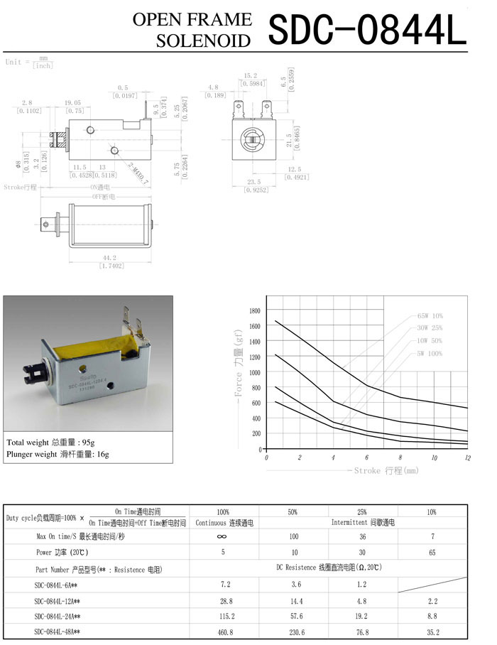 SDC-0844L-6A,SDC-0844L-12A,SDC-0844L-24A,SDC-0844L-48A,直動(dòng)電磁鐵