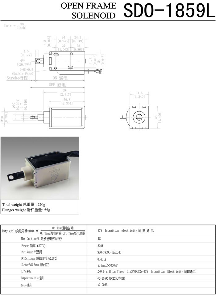 SDO-1859L-12A0.45,直動(dòng)電磁鐵