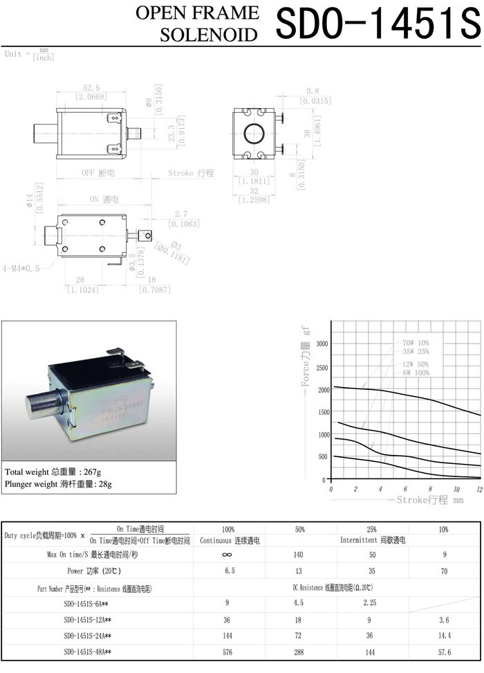 SDO-1451S-6A,SDO-1451S-12A,SDO-1451S-24A,SDO-1451S-48A,直動電磁鐵 |
