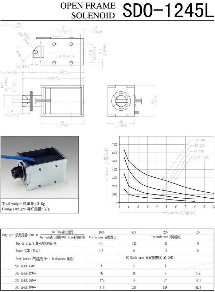 SDO-1245L-6A,SDO-1245L-12A,SDO-1245L-24A,SDO-1245L-48A,直動(dòng)電磁鐵