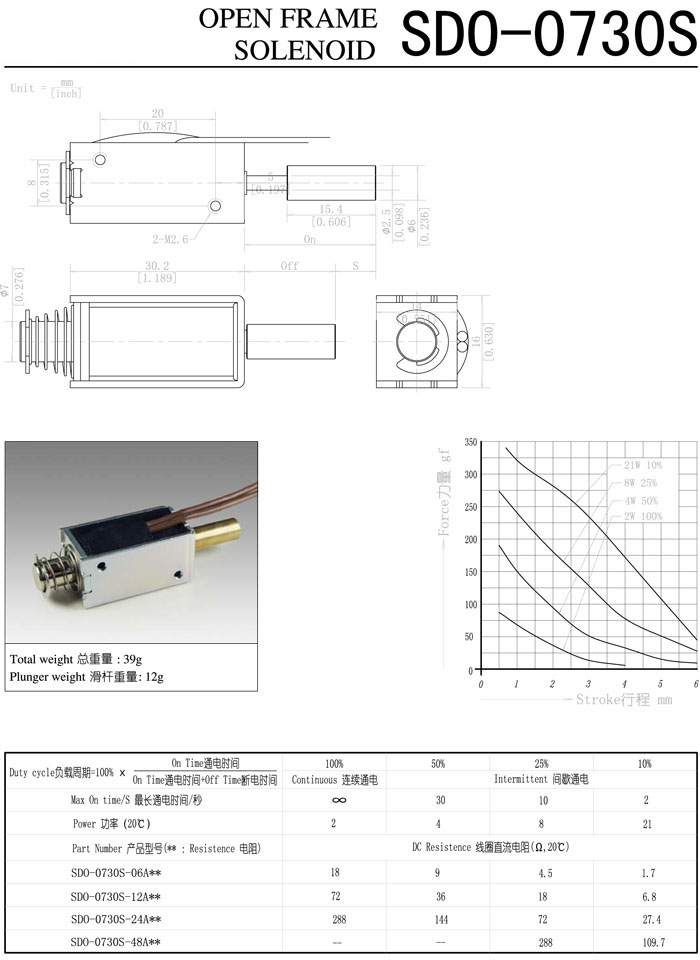 SDO-0730S-06A,SDO-0730S-12A,SDO-0730S-24A,SDO-0730S-48A,直動電磁鐵 |