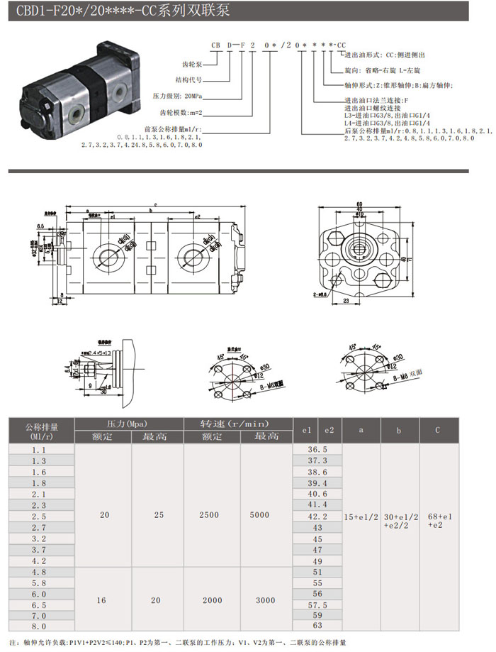 CBD-F200.8/200.8FZ-CC,CBD-F201.1/200.8FZ-CC,CBD-F201.3/200.8FZ-CC,CBD-F201.6/200.8FZ-CC,雙聯(lián)泵