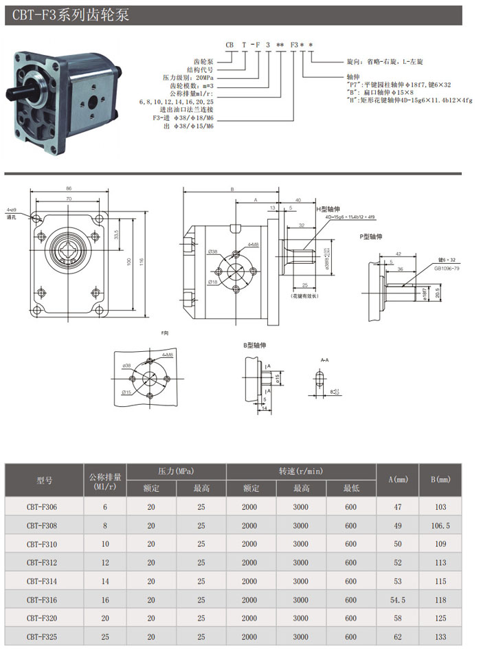 CBT-F306,CBT-F308,CBT-F310,CBT-F312,CBT-F314,CBT-F316,CBT-F320,CBT-F325,CBT-F306F3P7,齒輪泵