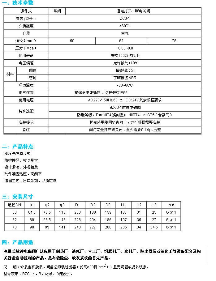 ZCJ-Y-0.3,ZCJ-Y-8,BZCJ-Y-0.3,BZCJ-Y-8,淹沒式脈沖電磁閥
