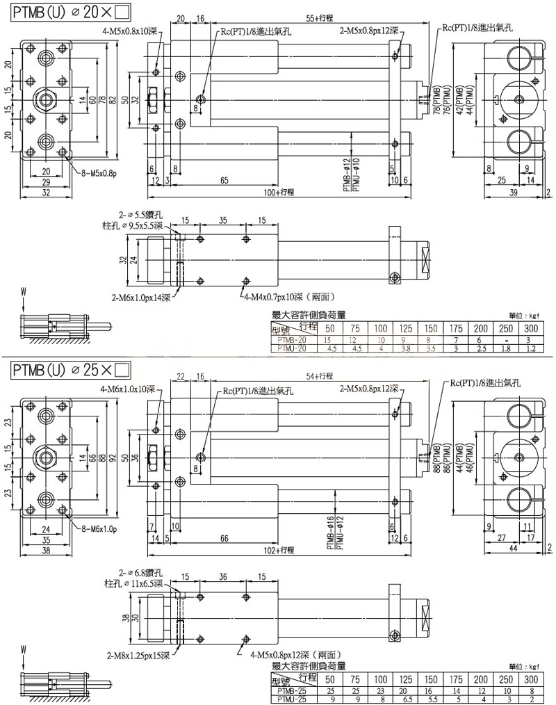 PTMB-20,PTMU-32,PGCB-20,PGCU-32,PTMB-40,PGCB-40,panix輕負荷導桿氣缸