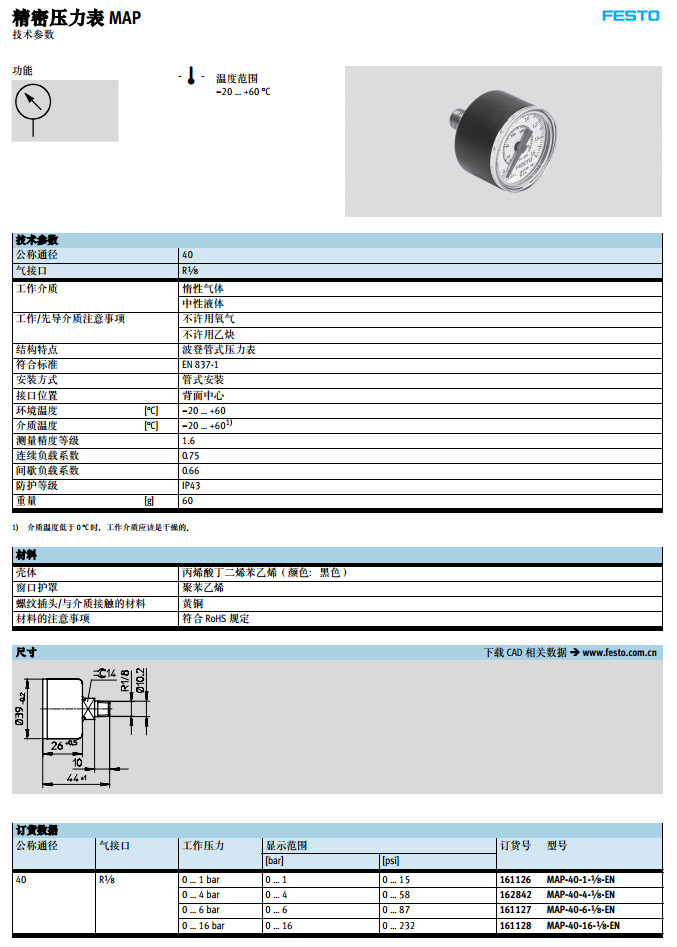 MAP-40-1-1/8-EN,MAP-40-4-1/8-EN,MAP-40-6-1/8-EN,festo精密壓力表 |