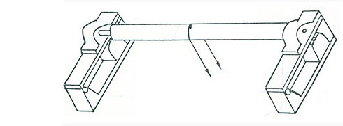 (2)將傳感器安裝好的架座固定在主機(jī)架兩邊,并在傳感器架座的壓板上固定檢測輥如圖七,并保持與其他導(dǎo)輥平行。