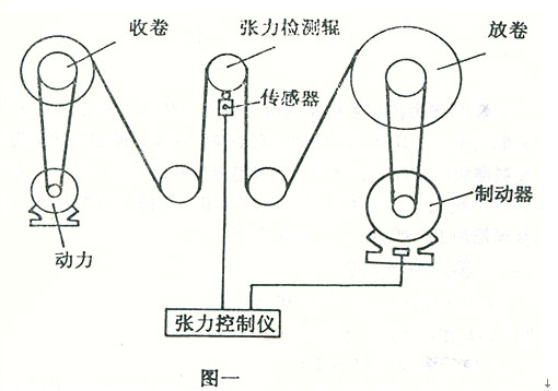 本系統(tǒng)構(gòu)成如圖一物料的張力通過張力檢測輥,作用在荷重傳感器上,張力控制儀通過荷重傳感器檢測實(shí)時(shí)張力,并與設(shè)定張力進(jìn)行比較、運(yùn)算,產(chǎn)生控制信號,驅(qū)動(dòng)變頻器電機(jī)執(zhí)行對張力的控制。