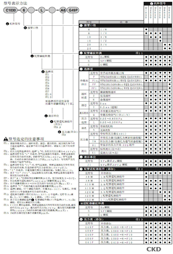 C1030-6,C1030-8,C2530-6,C3030-10,C4030-8,C4030-10,C4030-15,C6030-20,C6030-25,C8030-20,CKD三聯(lián)件