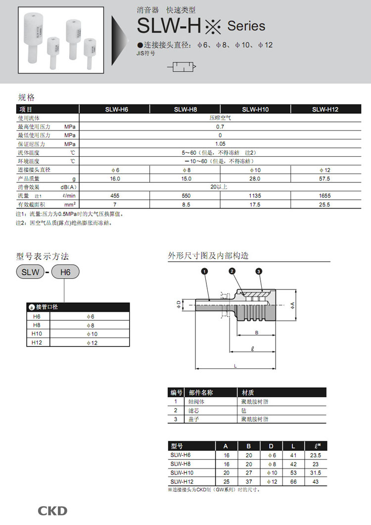 SLW-H6,SLW-H8,SLW-H10,SLW-H12,CKD消音器