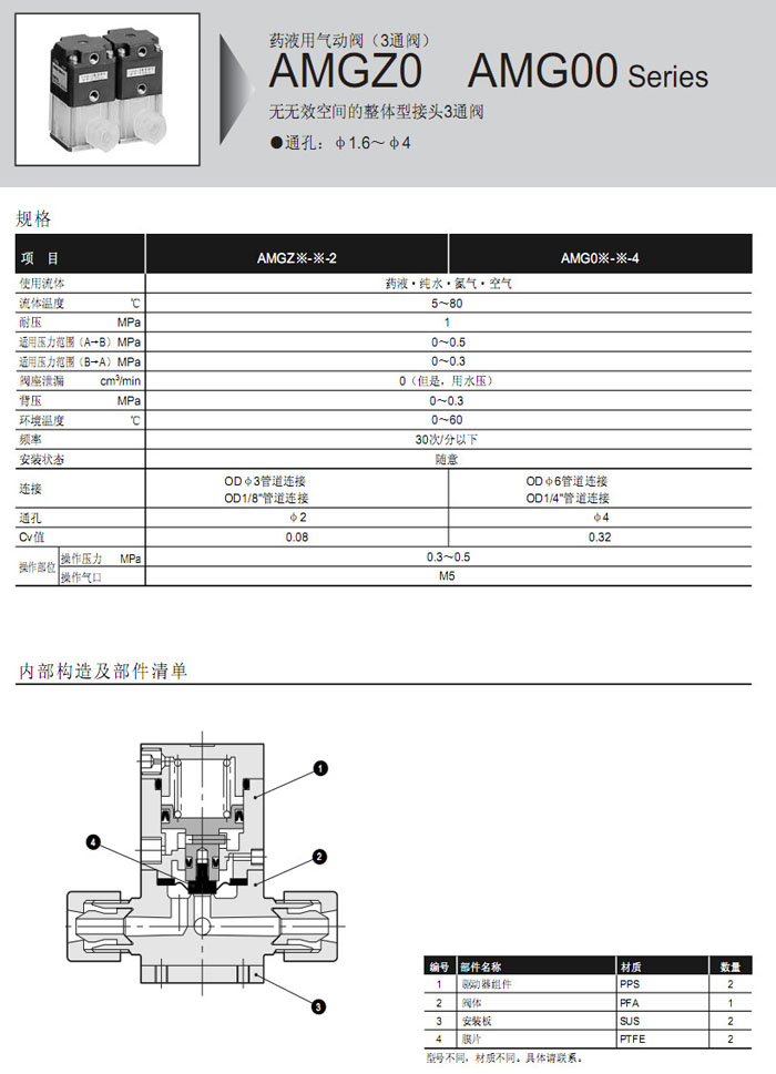 AMG00-6US-4,AMG00-8BUS-4,AMG00-6UJ-4,AMG00-8BUJ-4,AMG00-6UP-4,AMG00-8BUP-4,AMG00-6UF-4,CKD藥液用氣動閥