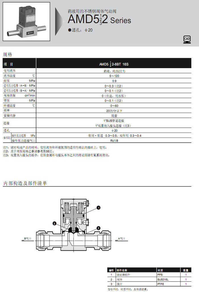 AMD512-8BT,AMD512-16S,AMD522-8BT,AMD522-16S,AMD532-8BT,AMD532-16S,CKD藥液用氣動閥