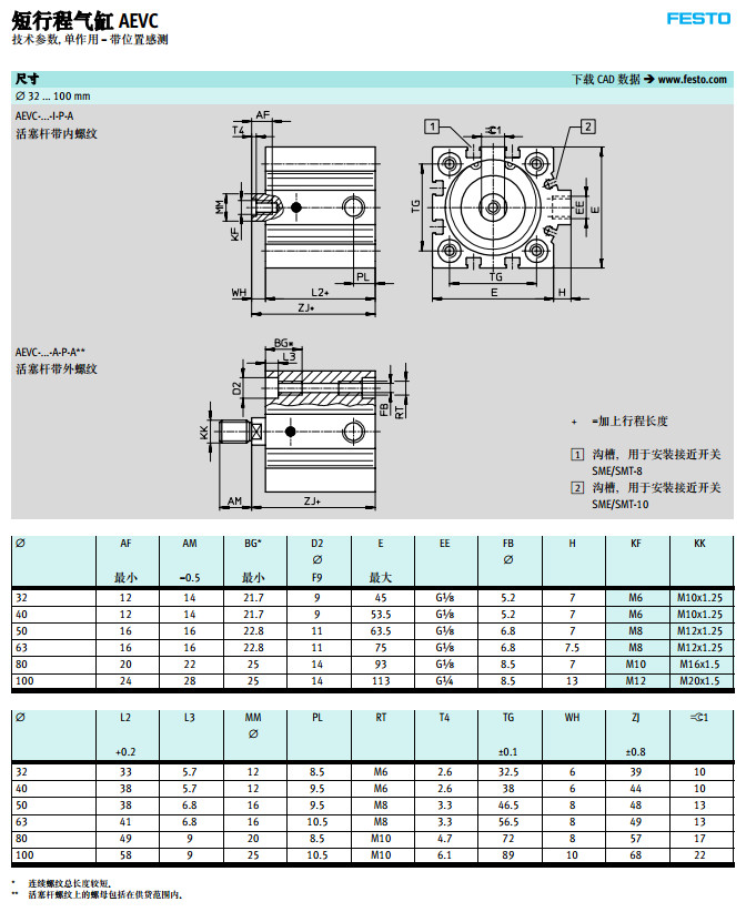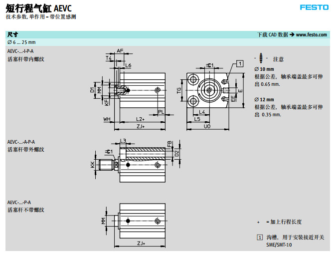 AEVC-4,AEVC-6,AEVC-10,AEVC-25,AEVC-32,AEVC-40,AEVC-50,festo短行程氣缸
