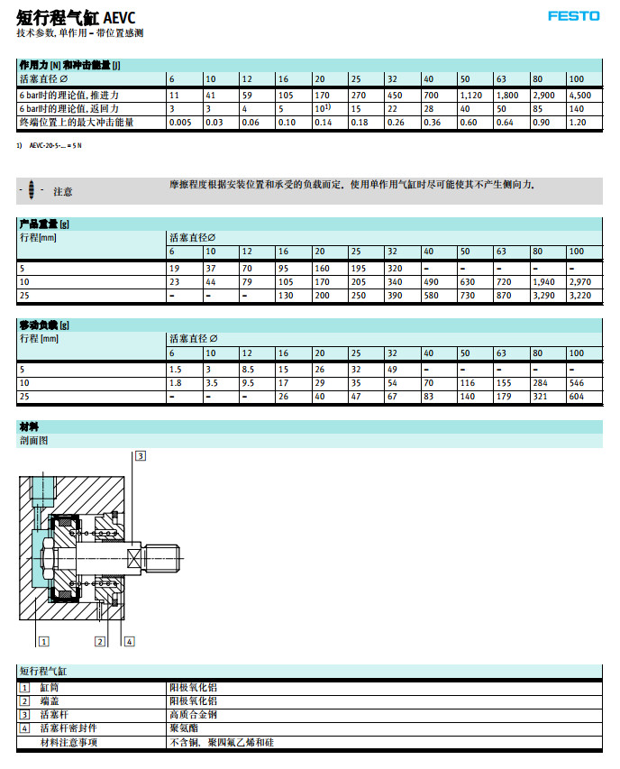 型號: AEVC-4,AEVC-6,AEVC-10,AEVC-25,AEVC-32,AEVC-40,AEVC-50,festo短行程氣缸