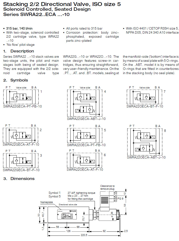 SWRA22GECA-AT-F-10,SWRA22GECA-PT-F-10V,SWRA22GECA-BT,SWRA22GECA-T,Bucher疊加閥 |