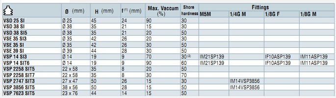 VSD_VSE_VSP系列吸盤,特別為食品生產專門設計,材料:硅膠(SI),半透明硅膠(SIT),有多種形狀和硬度可選擇,使用溫度:-40~220℃。