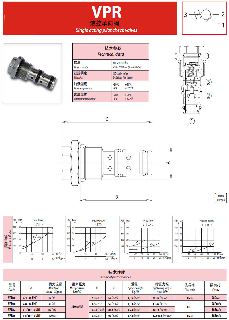 VPR08,VPR10,VPR12,VPR16,液控單向閥