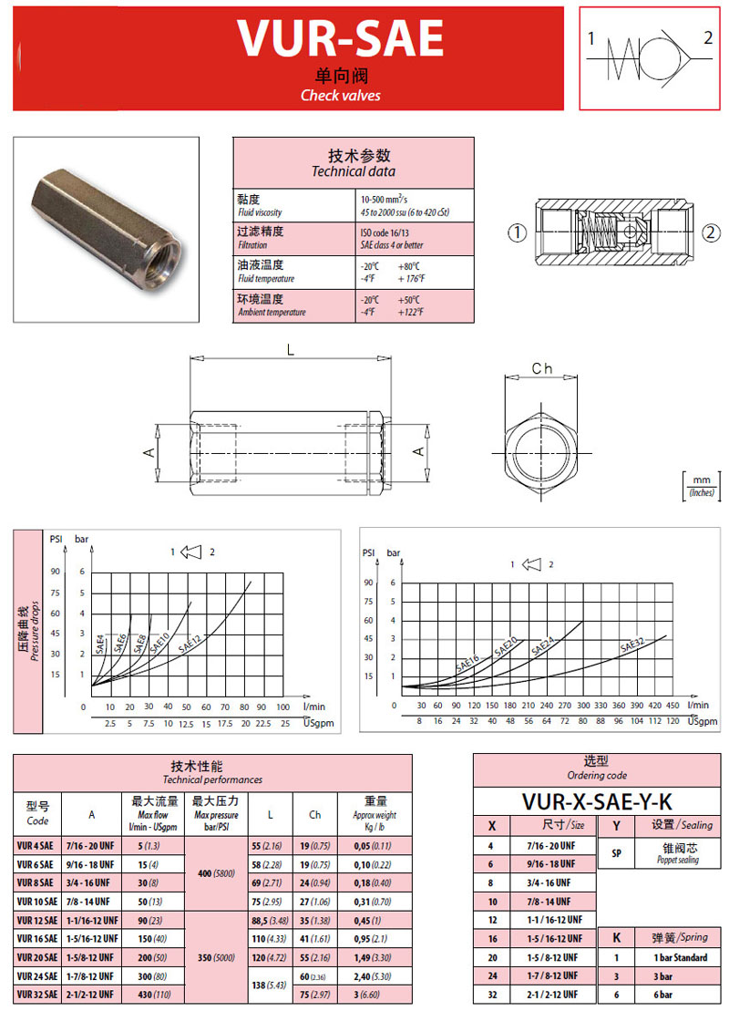 VUR4SAE,VUR6SAE,VUR8SAE,VUR10SAE,VUR12SAE,VUR16SAE,VUR20SAE,單向閥