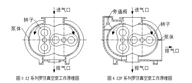 一、ZJ系列羅茨真空泵是利用一對(duì)8字型轉(zhuǎn)子在泵殼中保持一定的間隙,作等速反向旋轉(zhuǎn)而產(chǎn)生吸氣和排氣作用的(見(jiàn)圖3)。