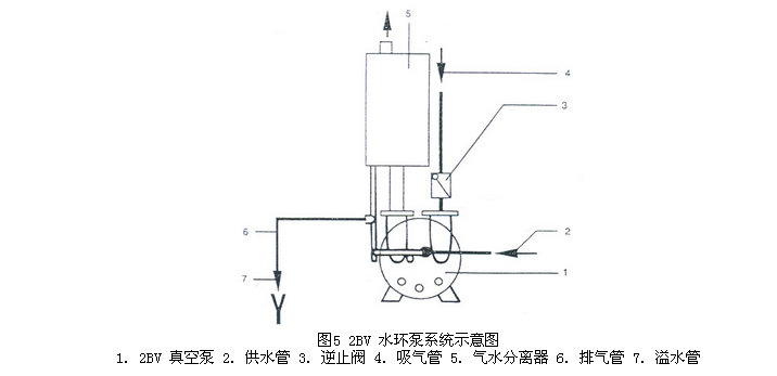 當(dāng)2BV水環(huán)式真空泵排出的氣體不再利用時(shí),在2BV水環(huán)式真空泵排氣口上接有氣水分離器,廢氣和所帶的部分水排入氣水分離器后,氣水分離,氣體由排氣管排出,留下的水經(jīng)回水管供至泵內(nèi)繼續(xù)使用。隨著工作時(shí)間的延長(zhǎng),工作水溫度會(huì)不斷地升高,這時(shí)需從供水管供給冷水,以降低工作水的溫度,保證泵能達(dá)到所要求的技術(shù)要求和性能指標(biāo)。