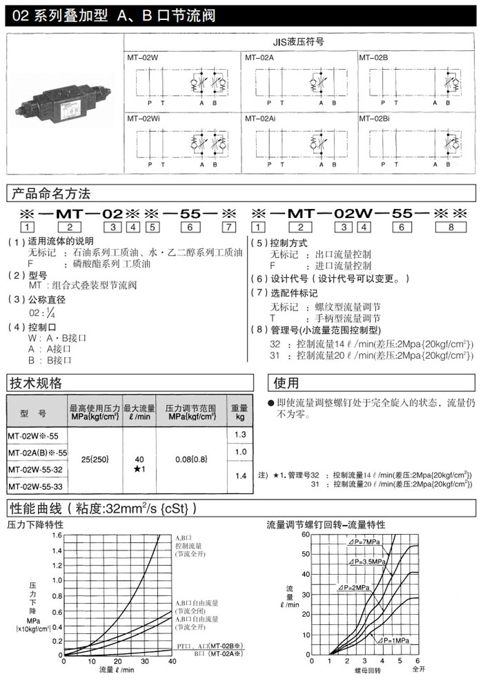 MT-02W,MT-02A,MT-02B,MT-02W-55,MT-02W-55-32,MT-02W-55-33,MT-02A-55,DAIKIN疊加型節(jié)流閥