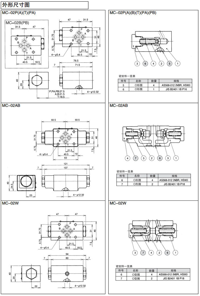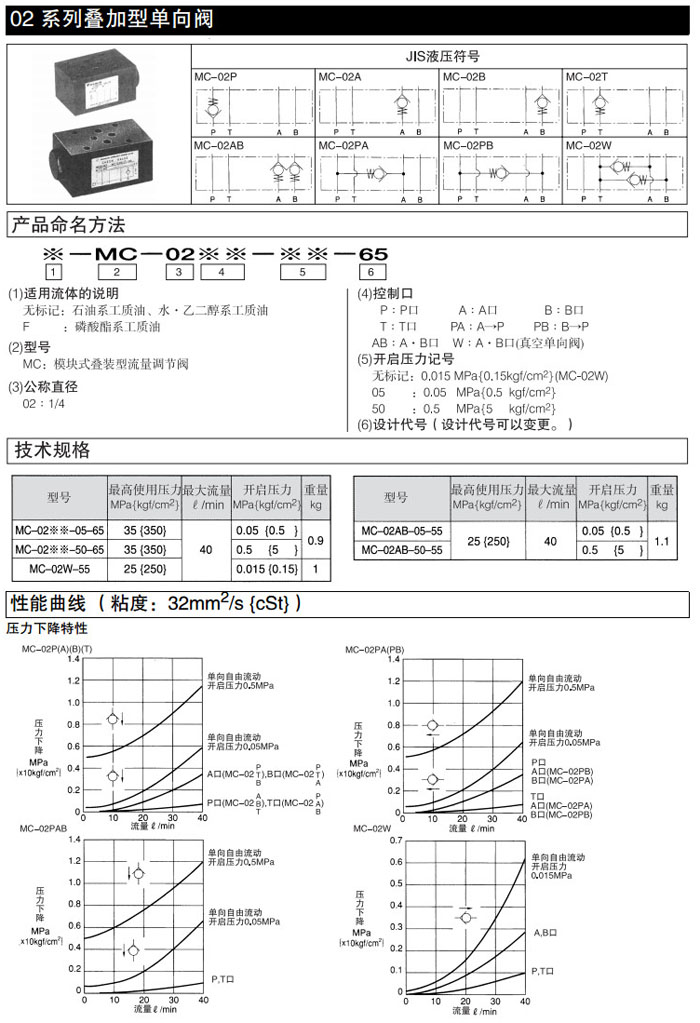 MC-02P,MC-02A,MC-02B,MC-02T,MC-02PA,MC-02PB,MC-02AB,MC-02W,MC-02P-65,DAIKIN疊加型單向閥