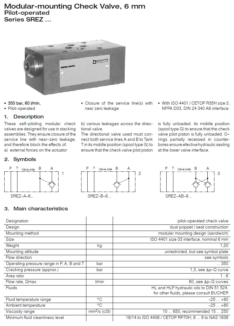 SREZ-A-6-1,SREZ-B-6-1,SREZ-AB-6-1,SREZ-A-6-V-1,SREZ-B-6-V-1,SREZ-AB-6-V-1,Bucher模塊安裝止回閥 |