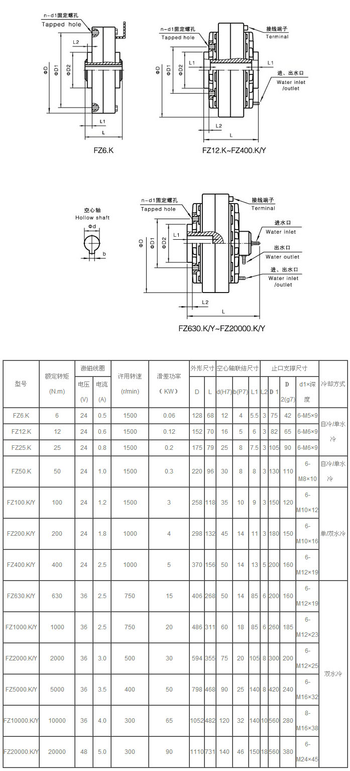 FZ6.K,FZ12.K,FZ25.K,FZ50.K,FZ100.K/Y,FZ200.K/Y,FZ400.K/Y,FZ630.K/Y,FZ1000.K/Y,磁粉制動器