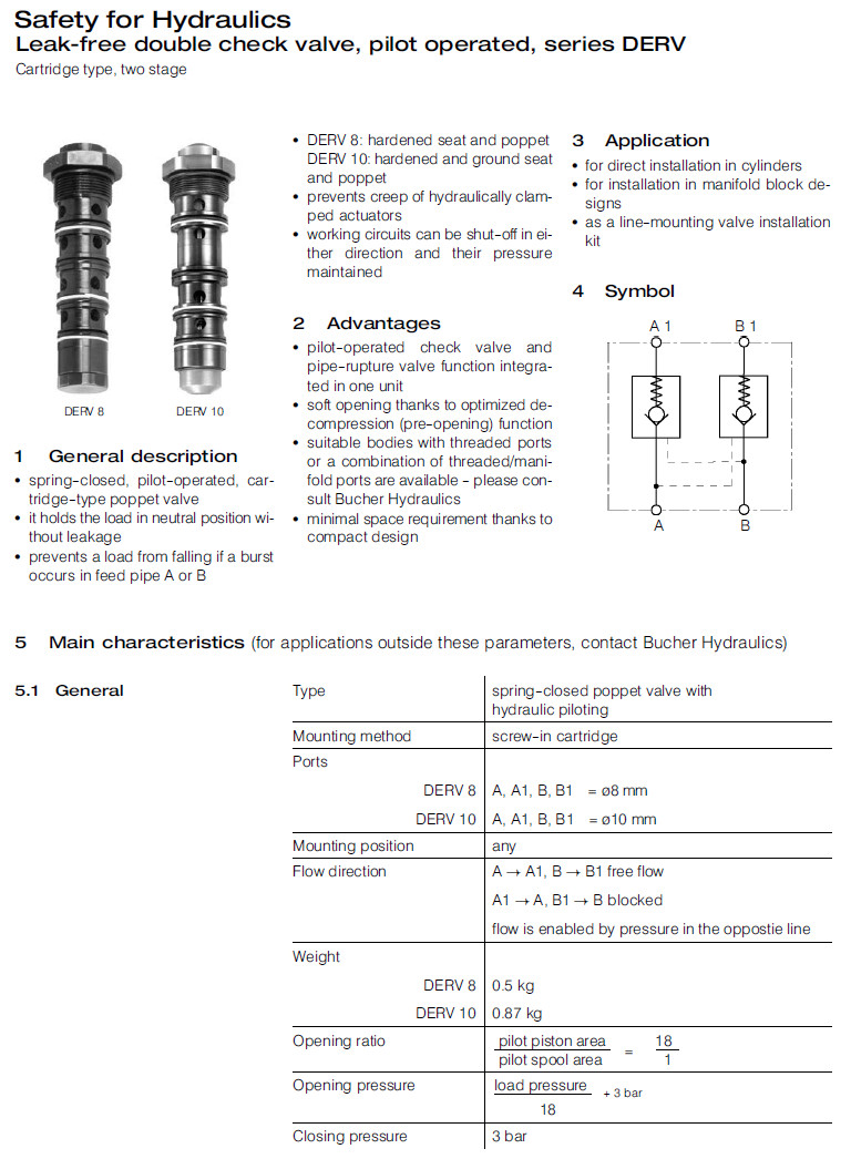 DERV-8-N,DERV-8-T,DERV-8-V,DERV-10-N,DERV-10-T,DERV-10-V,Bucher雙先導(dǎo)式止回閥