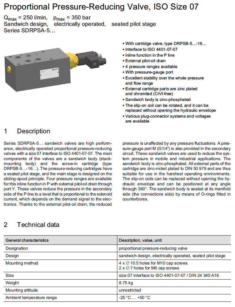 SDRPSA-535-P-16,SDRPSA-525-P-16,SDRPSA-516-P-16,SDRPSA-510-P-16,Bucher比例減壓閥