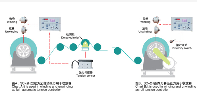 SC-2H型自動(dòng)張力控制儀可以設(shè)置卷徑張力控制儀,只需安裝接近開(kāi)關(guān)或編碼器對(duì)卷料半徑進(jìn)行測(cè)量,控制儀根據(jù)卷徑進(jìn)行張力控制。