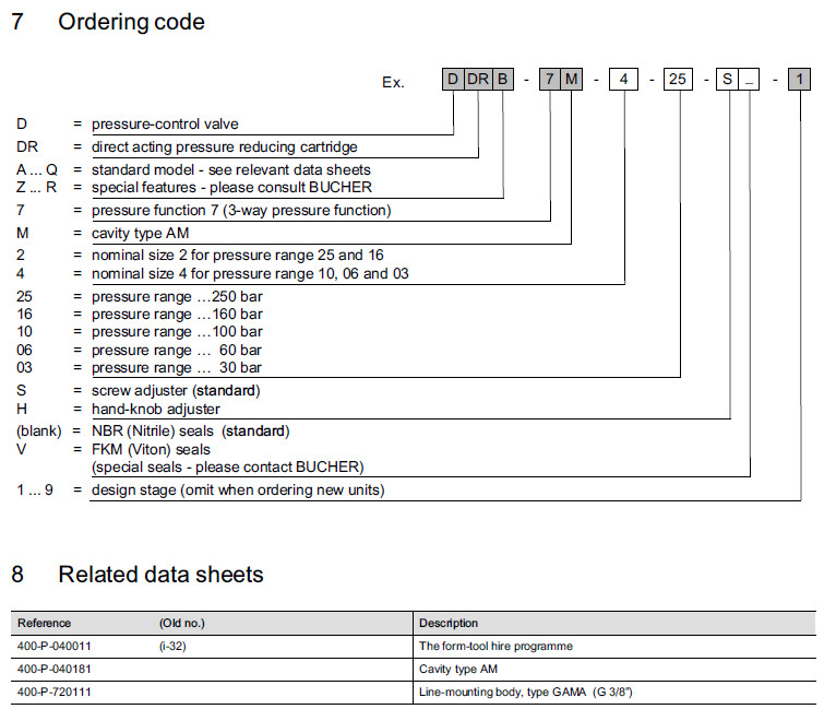 DDRB-7M-2-16,DDRB-7M-2-25,DDRB-7M-4-03,DDRB-7M-4-06,DDRB-7M-4-10,Bucher壓力控制閥 |