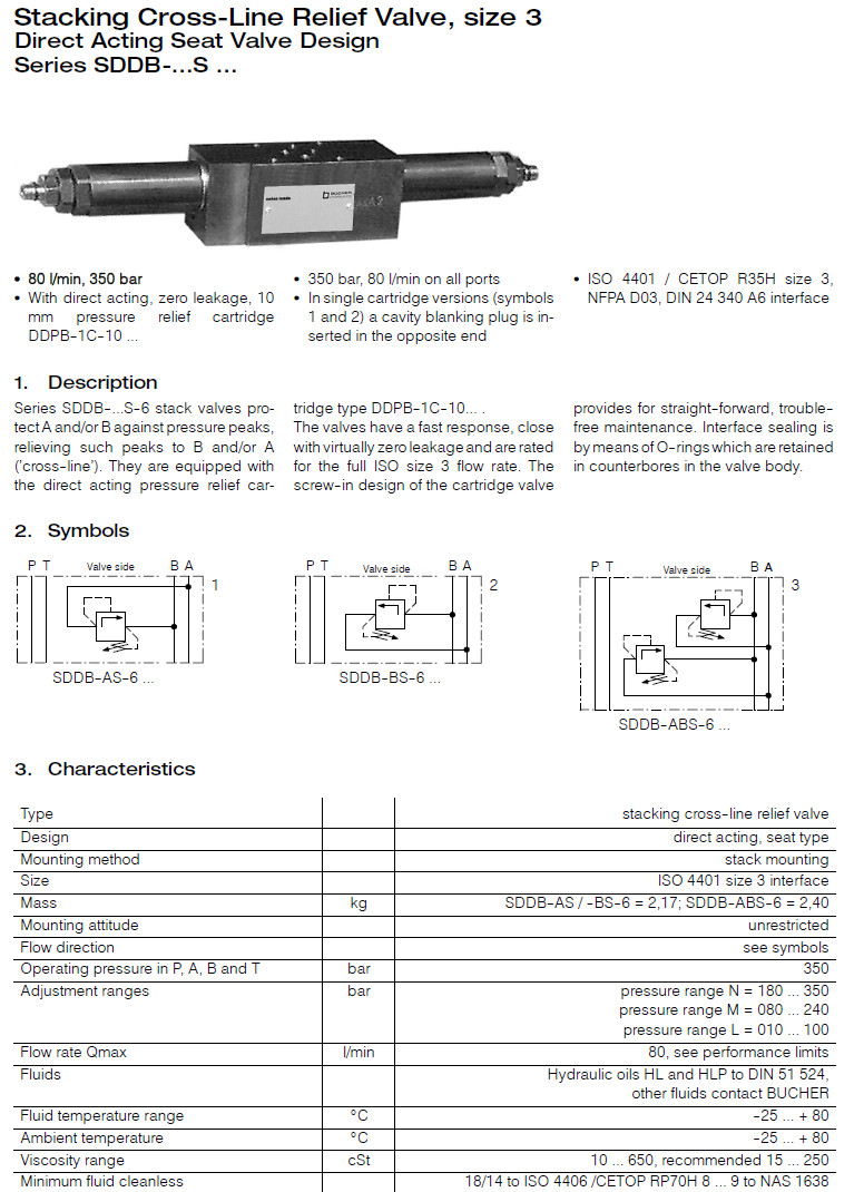 SDDB-AS-6-SN,SDDB-BS-6-SM,SDDB-ABS-6-SL,SDDB-AS-6-SNV,SDDB-AS-6-SMV,Bucher跨線卸壓閥 |