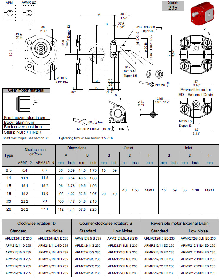 APM212/8.5-ED-235,APM212/11-ED-235,APM212/15-ED-235,