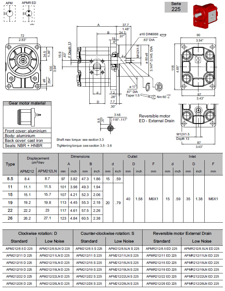 APM212/8.5-ED-225,APM212/11-ED-225,APM212/15-ED-225,