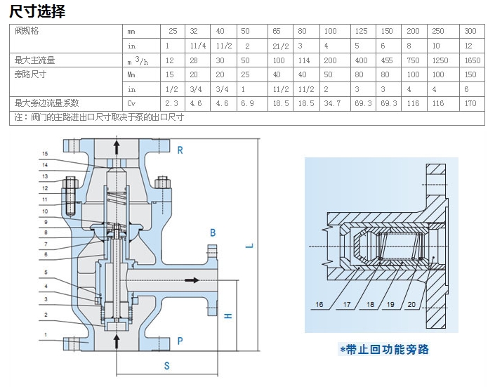 其它旁路尺寸可按要求制作;最大的旁路流量取決于最大的Kv值